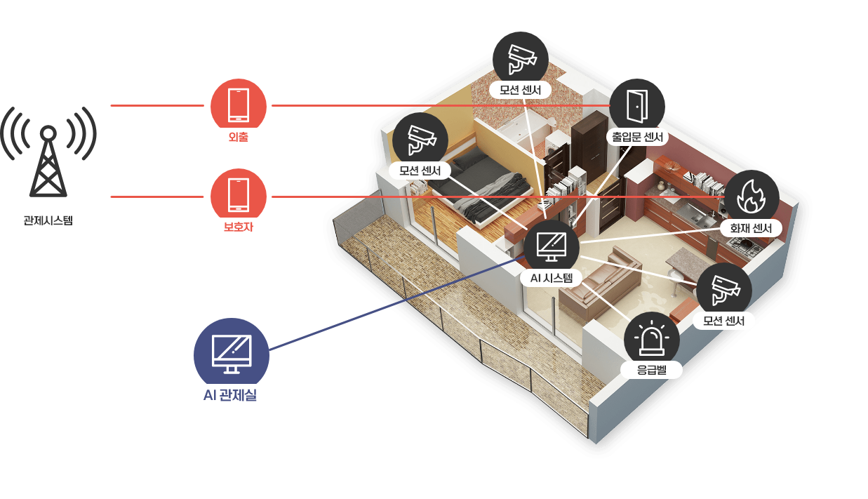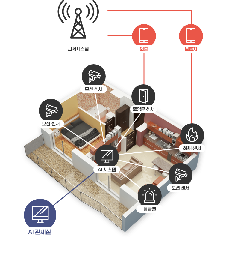 개인별 생활 패턴을 누적화 하여 평소와 다른 패턴 발생시 선제적 예측 대응 기능